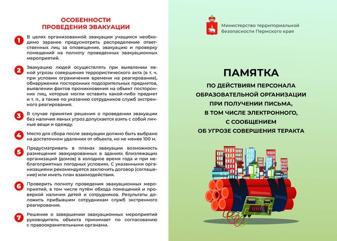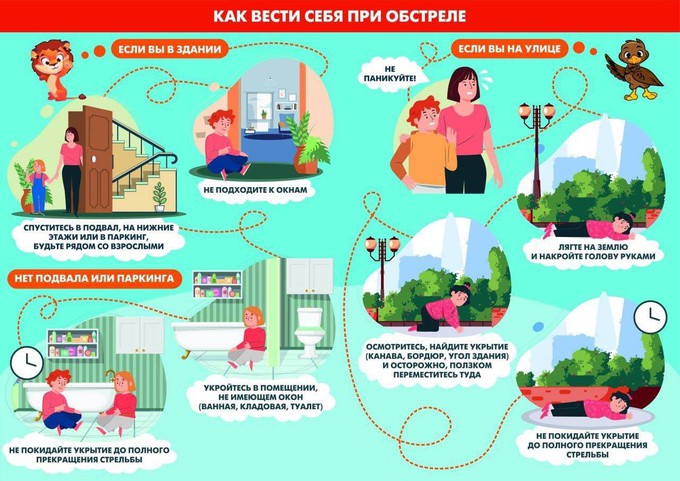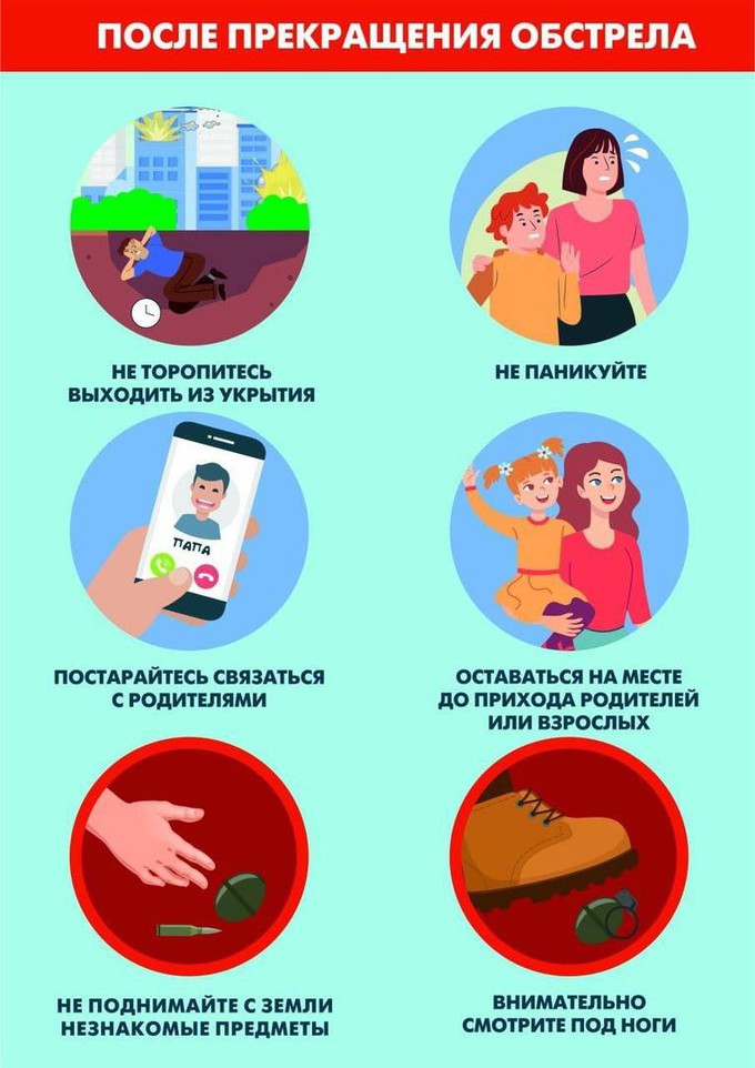 Для населения в таких ситуациях главный риск – это паника. Детям необходимо точно следовать инструкциям классного руководителя или воспитателя, также ребёнку нужно держаться вместе с классом или группой. Взрослым – без паники покинуть здание после объявления эвакуации.