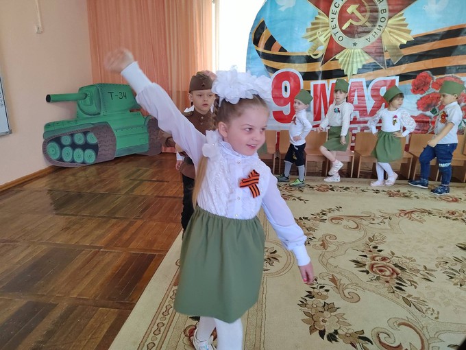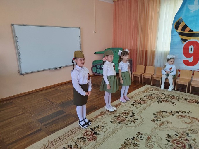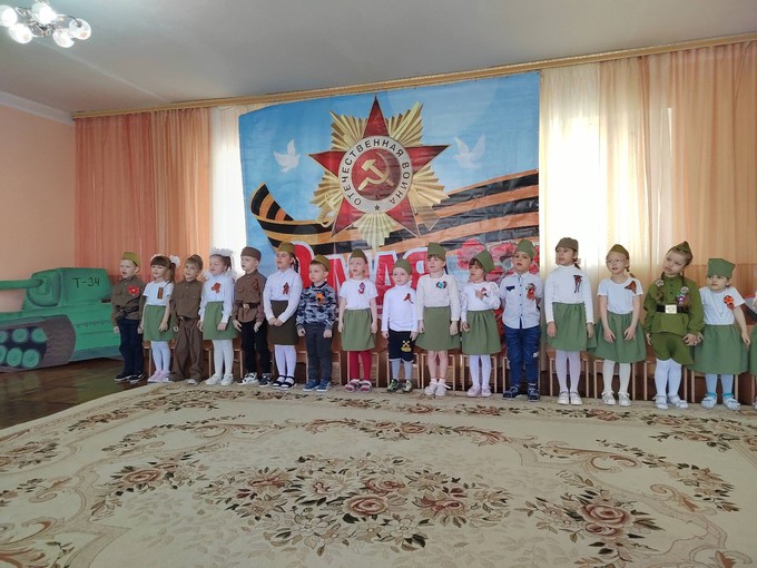 В преддверии празднования 78-летия Дня Победы, в нашем детском саду прошел праздник, посвященный Дню Победы. Праздник был подготовлен с целью формирования у детей знаний о Великой Отечественной войне, обогащения знаний дошкольников об истории своей страны, развития творческих способностей детей, воспитания чувства гордости за героизм нашего народа, воспитания устойчивого интереса к армии. В программу мероприятия вошли песни, танцы, стихи о войне. Все присутствующие в зале память о погибших героях войны почтили минутой молчания.