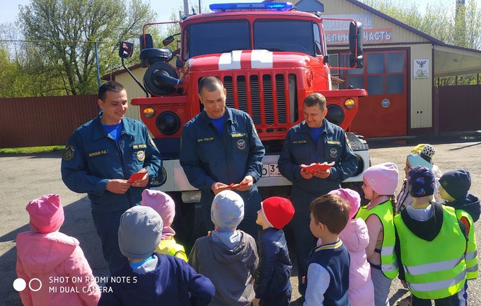 В рамках проведения месячника по пожарной безопасности, 28 апреля ребята старшей группы отправились на экскурсию в пожарную часть с.Гостищево.В ходе интересной встречи дети получили сведения о профессии пожарного и особенностях этой важной работы. Сотрудники пожарной службы познакомили ребят со спецодеждой пожарного, со средствами тушения пожара, с работой рации и алгоритмом действий пожарного при экстренном случае.Ребята смогли посидеть за рулём пожарной машины и ощутить себя бесстрашным пожарным.Кто знает, может через несколько лет кто-то из ребят вернётся в пожарную часть не на экскурсию, а на работу!Так же работникам пожарной службы ребята вручили поздравительные открытки в честь профессионального праздника "Дня пожарной охраны России!"