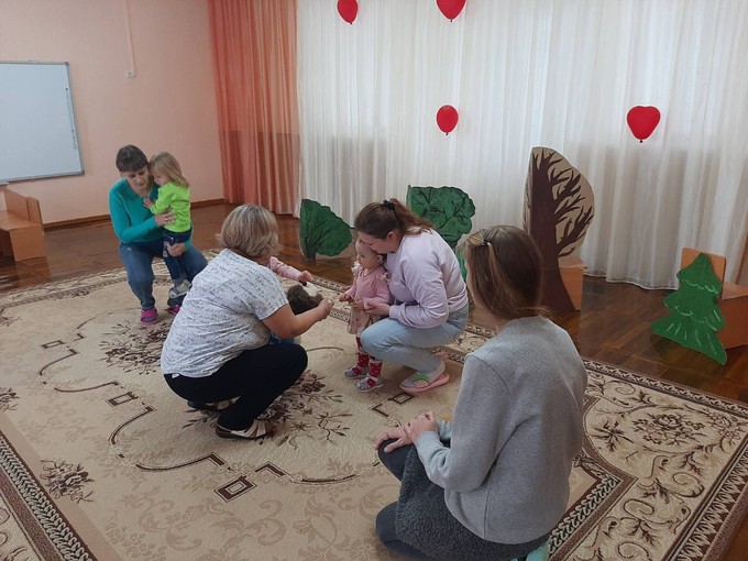 Вновь наш консультационный центр посетили малыши с мамами. Дети подружились с ежиком, помогли ему собрать грибы, выполняли упражнения по мелкой моторике, сделали для своего друга аппликацию "Грибок на полянке". Ребята играли в игры, разучивали песенки и танцевали.