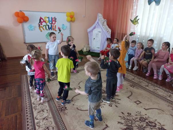 Весело и задорно отпраздновали «Международный день птиц» ребята дежурных групп нашего детского сада! Дети пели, танцевали, читали стихотворения и играли, а развлекал их весёлый Клоун. Я начал птичку рисовать С душой, ни как попало Ведь птичек нужно охранять, Их так на свете мало Внизу хочу я написать: По птицам не стреляйте Не надо птичек убивать И гнёзд не разоряйте! Они не только ведь поют И просто так летают, Они ведь гусениц клюют И мух уничтожают Они для нас поют весной Поможем им, ребятки Чтоб сад сиял наш чистотой И зеленели грядки!!! Виктор Корболеев