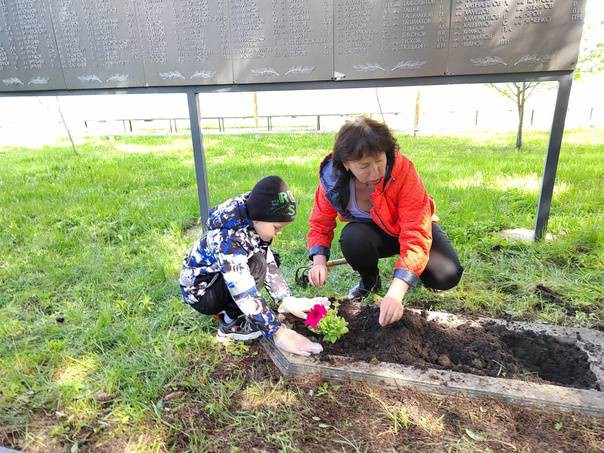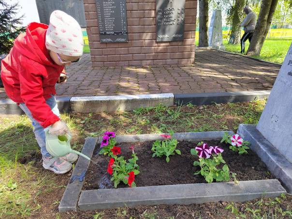 9 мая - праздник очень значимый для каждого жителя нашей страны. Все люди, жившие в те страшные годы, внесли огромный вклад в Великую Победу, чем заслужили вечную память и признание потомков. Мы будем помнить всегда их подвиги и мужество! Будут помнить наши дети и внуки! Во всех городах и сёлах есть памятные места, куда приходят люди, чтобы почтить память героев. У нас в селе есть такое место, и не одно. В преддверии главного праздника страны сотрудники детского сада вместе с добровольческим отрядом "Лучики добра" навели порядок и произвели высадку цветов на братской могиле, отдав дань уважения всем солдатам, не вернувшимся с войны, всем, кто погиб в боях и не дожил до этих дней.