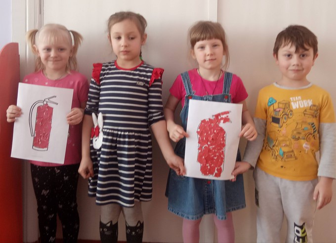В детском саду проходит неделя комплексной безопасности. Деятельность воспитателей направлена на осуществление комплексных мероприятий для обеспечения безопасного поведения детей. Сегодня рассматривали одно из направлений комплексной безопасности - пожарная безопасность. В организованной образовательной деятельности вместе с детьми закрепили знания правильного поведения при возникновении пожара, пояснили понятие "Пожарная безопасность", научились ориентироваться в проблемной ситуации. Во время продуктивной деятельности ребята использовали один из видов аппликации- обрывная аппликация (наклеивание рваных кусочков бумаги). Такая техника интересна детям, так как представляет собой выкладывание "мозаики", и с помощью её можно изобразить любой предмет.