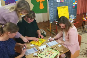 С целью повышения профессиональной компетентности педагогов через использование инновационных игровых технологий при организации деятельности с детьми дошкольного возраста, популяризация идеи использования технологии В.В. Воскобовича среди педагогов, в ДОУ был проведен семинар «Развивающие игры нового поколения в интеллектуальном развитии дошкольника»(технология "Сказочные лабиринты игры" В.В.Воскобовича).На семинаре педагоги продолжали знакомить коллег со способами применения игровой развивающей технологии «Сказочные лабиринты игры» в деятельности с воспитанниками. В рамках семинара были продемонстрированны элементы практических занятий с использованием развивающих игр В.В. Воскобовича, педагоги показали мастер-класс по использованию развивающей среды "Фиолетовый лес" в деятельности с детьми раннего возраста. Логопедом был проведен практикум по организации индивидуальной деятельности с детьми ОНР с использванием игрового комплекта "МиниЛарчик".Так же был показан мастер-класс по применению игровых пособий "Игровизор" и "Геоконт" в ОД детей подготовительной группы.