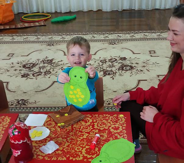 В очередной раз прошла встреча в консультационном центре с малышами. Ребята познакомились с матрёшками, украсили сарафан для матрёшек в технике аппликация, играли в игры для сенсорного развития, в игры с мячами.